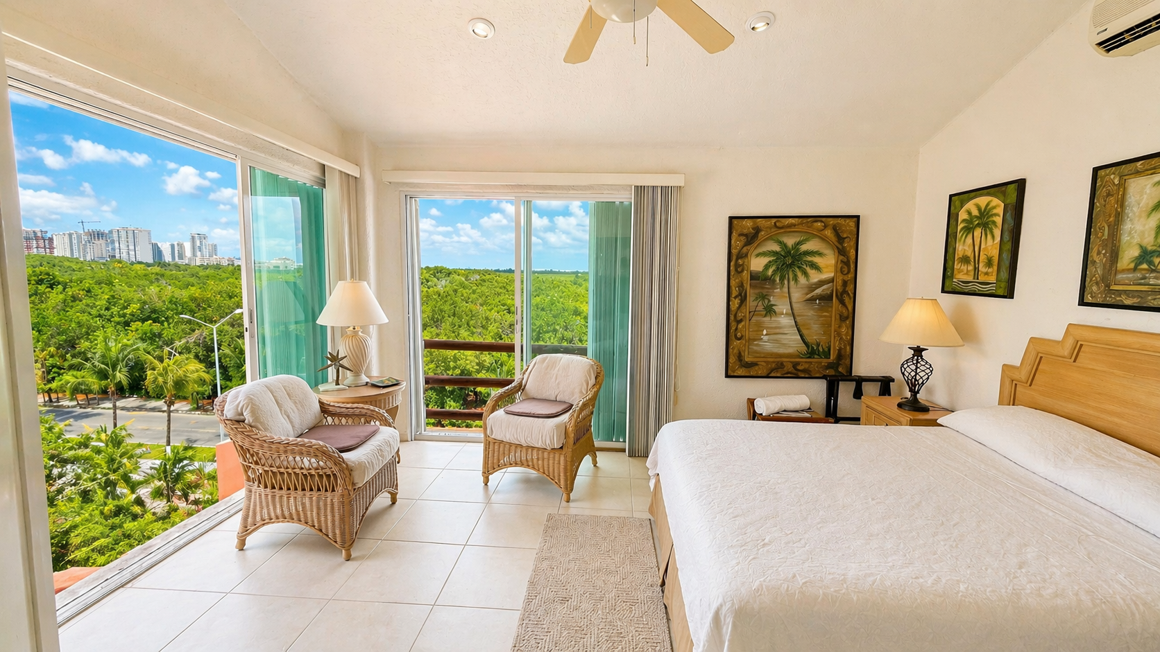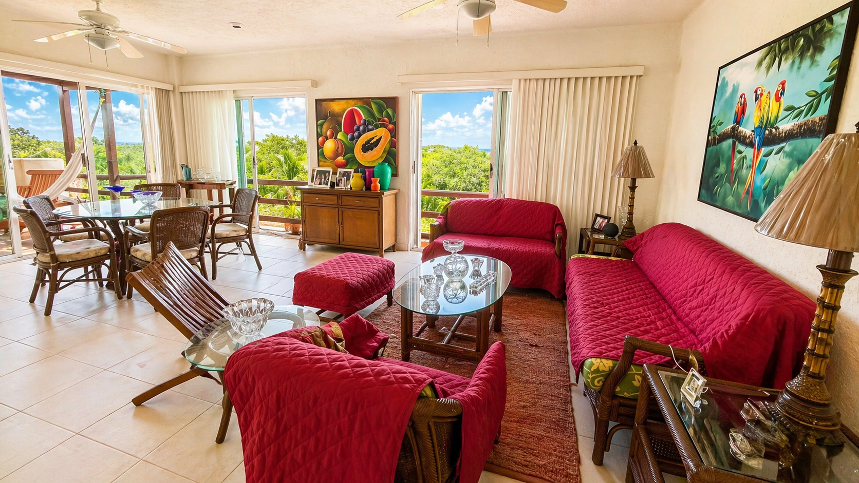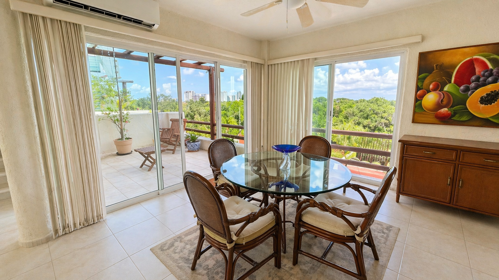 🍽️ Sala y comedor con vistas panorámicas al manglar de laguna nichupte.